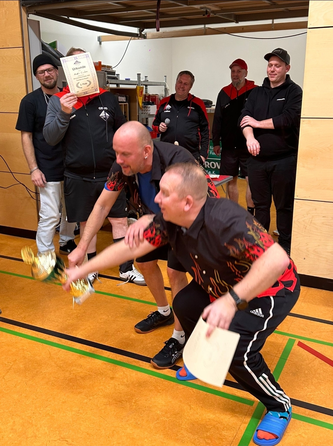 Mit 22 Aktiven wurden die im Vorfeld frei gelosten Gruppen im Einzel und Doppelkonstellationen im KO-System ausgespielt. Erfreudig zu erwähnen sei das neben Margot erstmals seit etlichen Jahren insgesamt 3 Frauen mit an den Start gingen. Nach zum Teil heiteren, aber auch heißen Gruppenspielen setzte sich am Ende die Klasse durch.